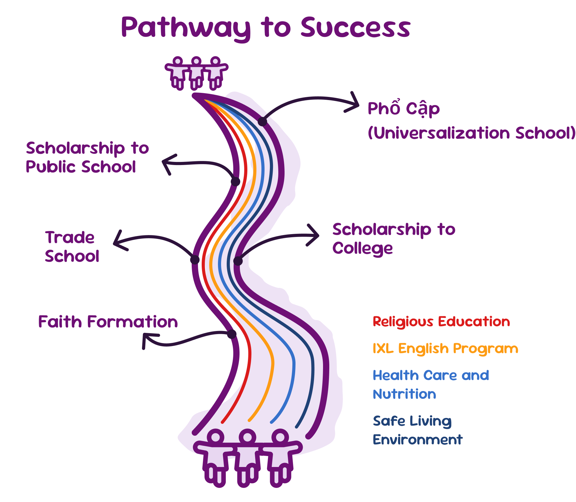 We offer multiple entry pathways so students can access education regardless of their circumstances. In Vietnam, strict age limits, academic gaps, financial hardship, and unsafe living conditions can prevent children from enrolling in school. To address this, we create flexible entry points for students to begin their education.